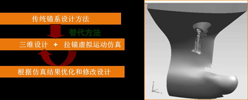 經(jīng)過與國內(nèi)行業(yè)權(quán)威設(shè)計院的合作過,并將該技術(shù)應(yīng)用于船舶建造中,對錨鏈筒、錨臺、錨唇、錨穴、錨、錨鏈、錨機、止鏈器、導(dǎo)鏈滾輪、船體等進行三維設(shè)計和自動建模,實現(xiàn)了三維錨系計,保證了錨系設(shè)計中空間位置定位的準(zhǔn)確性,并通過三維軟件導(dǎo)出二維CAD圖紙,扭轉(zhuǎn)了一直以來二維圖紙與船廠錨系施工脫節(jié)的局面,極大提高了錨系設(shè)計的效率。除此之外,利用軟件的后期的仿真功能,模擬并預(yù)報收錨過程的動態(tài)效果并給出調(diào)整方案。
